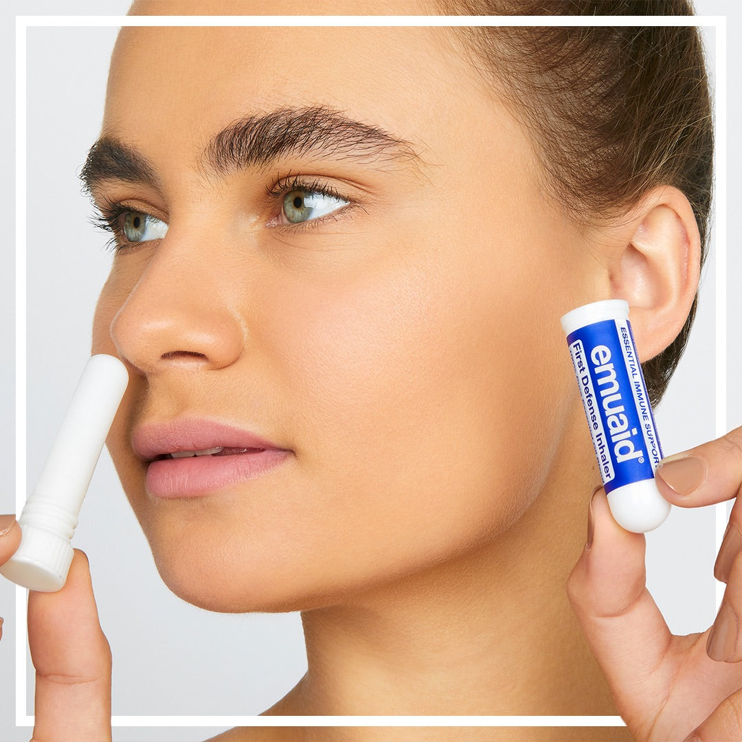 Featuring a powerful, protective blend of pure essential oils, EMUAID® FIRST DEFENSE INHALER helps maintain wellbeing, provides relief from seasonal discomfort and environmental stress and delivers essential immune support. Experts agree that inhalation is the SAFEST AND MOST EFFECTIVE WAY TO EXPERIENCE THE BENEFITS OF ESSENTIAL OILS.